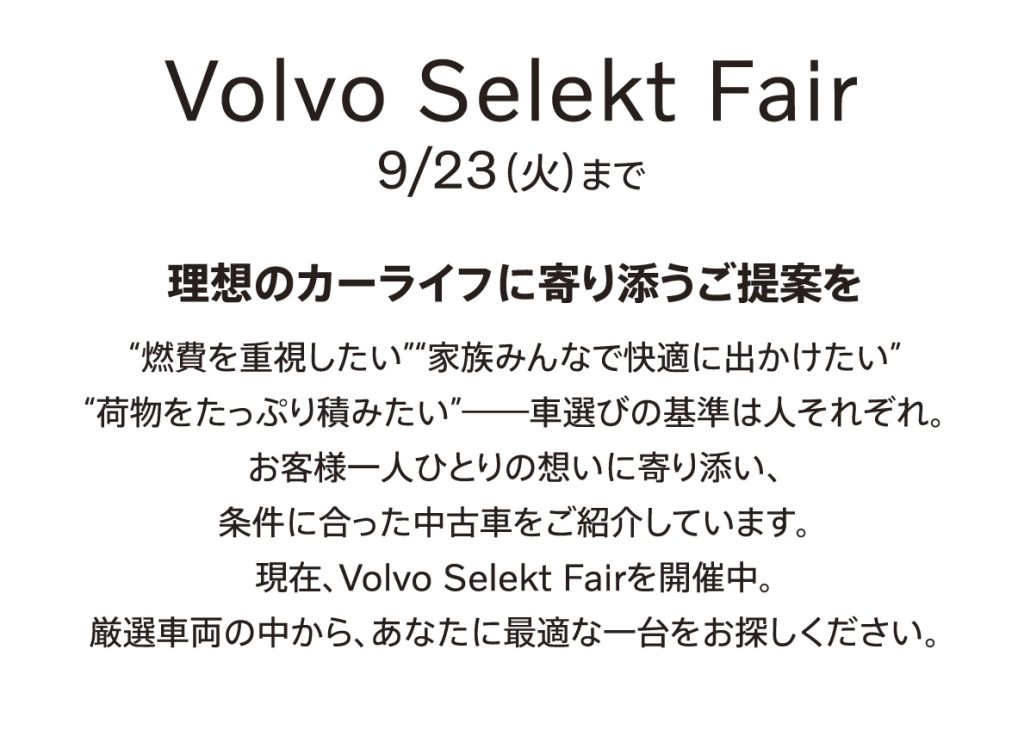 【 FAIR 】~9/23 Volvo Selekt Fair
