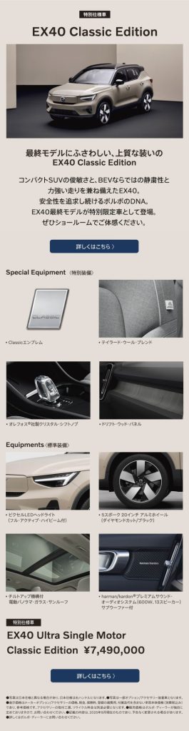 【 特別仕様車 】EX40 Classic Edition 発売.