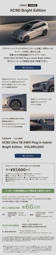 【 特別限定車 】 XC90 Bright Edition 100台限定 発売!